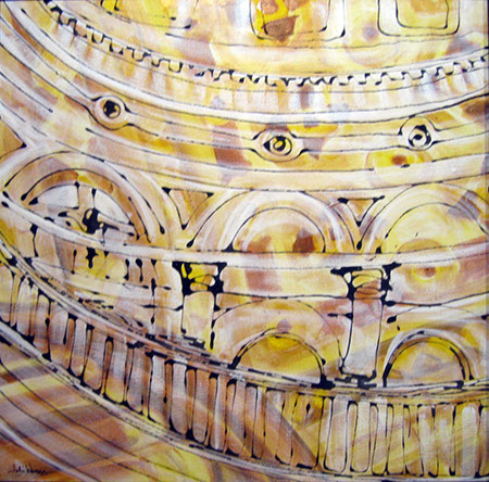 Politics has played a prominent role in my life over the last two decades. As a visual artist, the first time I flew over the Sacramento Delta to visit the capitol of California I was very excited by the view. The rice fields shimmered in the sun, the quilt of farmland, the aqueduct, and the amazing colors drew me in. I ended up layering the aerial view behind line drawings of the capitol building for a blend of architecture and landscape. The work was shown in Sacramento and San Diego over the course of the years, much of it is now in private collections.